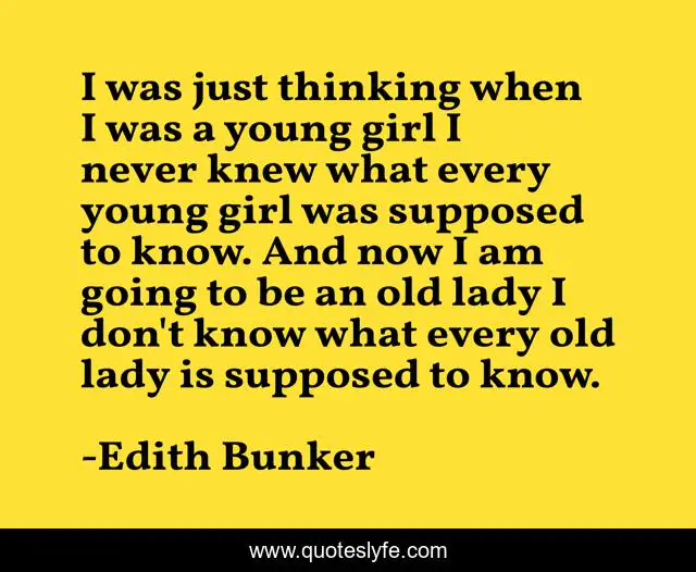 This page presents the quote "I was just thinking when I was a young girl I never knew what every young girl was supposed to know. And now I am going to be an old lady I don't know what every old lady is supposed to know.". Author of this quote is Edith Bunker. This quote is about age, birthdays,.