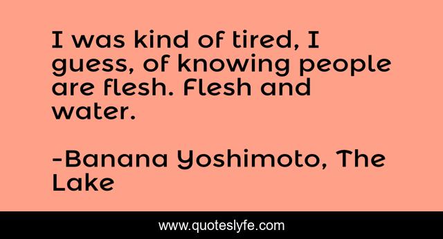 This page presents the quote "I was kind of tired, I guess, of knowing people are flesh. Flesh and water.". Author of this quote is Banana Yoshimoto, The Lake. This quote is about humans, people,.