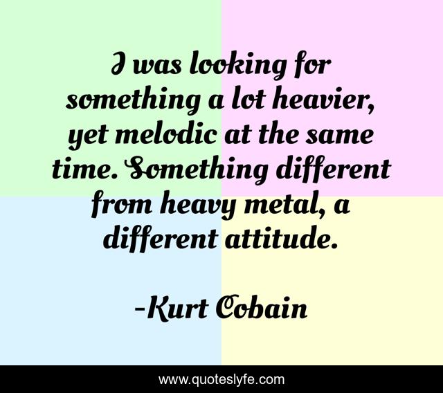 This page presents the quote "I was looking for something a lot heavier, yet melodic at the same time. Something different from heavy metal, a different attitude.". Author of this quote is Kurt Cobain. This quote is about looking, same, time,.