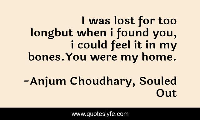 "Anjum Choudhary, Souled Out Quotes." Quoteslyfe.com, 2025. Fri. 05 Dec. 2025. <https://www.quoteslyfe.com/quote/I-was-lost-for-too-longbut-when-47612>.