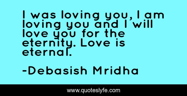 This page presents the quote "I was loving you, I am loving you and I will love you for the eternity. Love is eternal.". Author of this quote is Debasish Mridha. This quote is about life, love, knowledge, inspirational, intelligence, philosophy, wisdom, quotes, affection,.