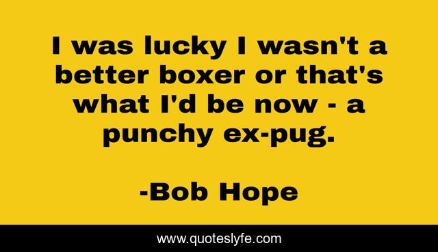 This page presents the quote "I was lucky I wasn't a better boxer or that's what I'd be now - a punchy ex-pug.". Author of this quote is Bob Hope. .