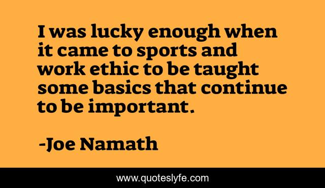 This page presents the quote "I was lucky enough when it came to sports and work ethic to be taught some basics that continue to be important.". Author of this quote is Joe Namath. This quote is about work ethic, work, important,.