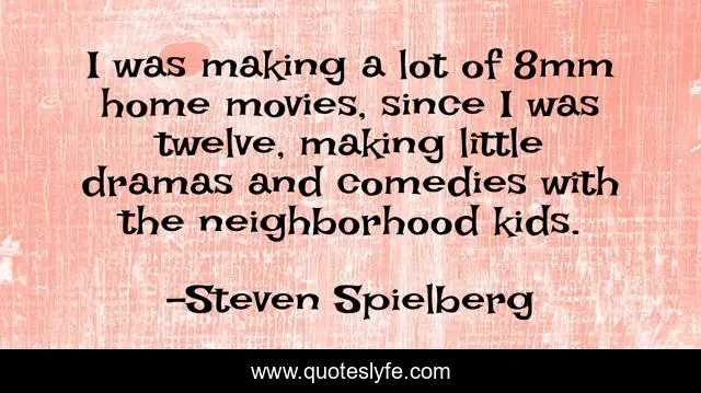 This page presents the quote "I was making a lot of 8mm home movies, since I was twelve, making little dramas and comedies with the neighborhood kids.". Author of this quote is Steven Spielberg. This quote is about home, kids, neighborhood,.