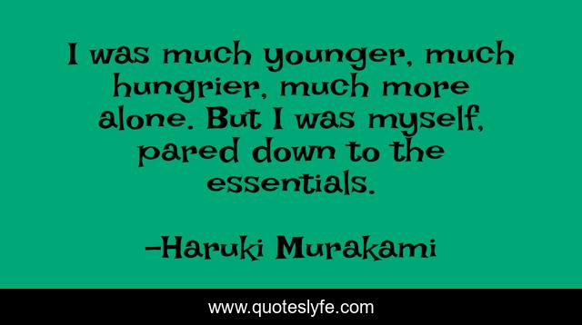 This page presents the quote "I was much younger, much hungrier, much more alone. But I was myself, pared down to the essentials.". Author of this quote is Haruki Murakami. This quote is about youth, loneliness,.