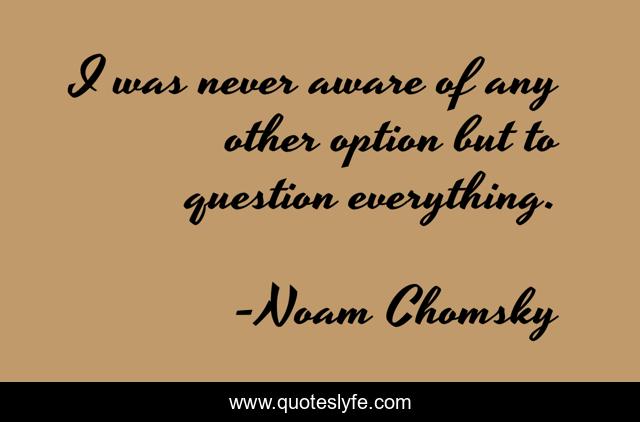 This page presents the quote "I was never aware of any other option but to question everything.". Author of this quote is Noam Chomsky. .