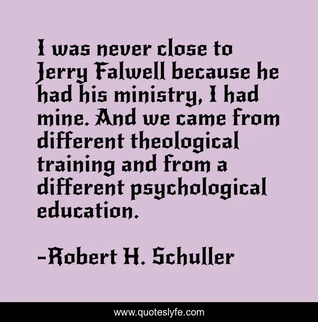 This page presents the quote "I was never close to Jerry Falwell because he had his ministry, I had mine. And we came from different theological training and from a different psychological education.". Author of this quote is Robert H. Schuller. This quote is about training, different,.