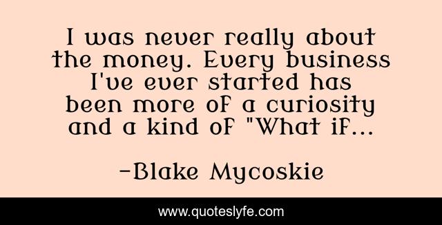 I was never really about the money. Every business I've ever started has been more of a curiosity and a kind of "What if...