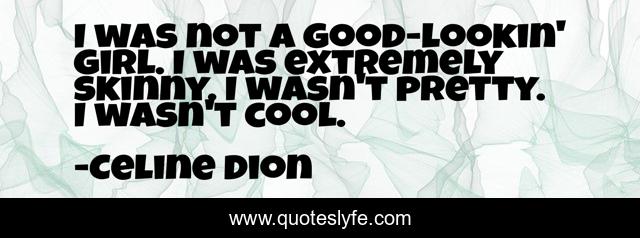 This page presents the quote "I was not a good-lookin' girl. I was extremely skinny. I wasn't pretty. I wasn't cool.". Author of this quote is Celine Dion. This quote is about girl, skinny, cool,.