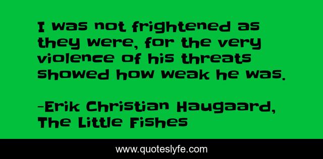 This page presents the quote "I was not frightened as they were, for the very violence of his threats showed how weak he was.". Author of this quote is Erik Christian Haugaard, The Little Fishes. .