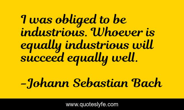 This page presents the quote "I was obliged to be industrious. Whoever is equally industrious will succeed equally well.". Author of this quote is Johann Sebastian Bach. This quote is about succeed, well,.