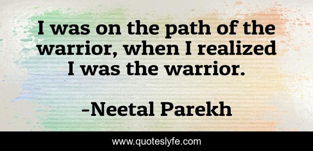 This page presents the quote "I was on the path of the warrior, when I realized I was the warrior.". Author of this quote is Neetal Parekh. This quote is about warrior, realized, realization, inspirational, enthusiasm, path,.