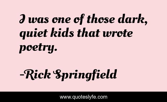 This page presents the quote "I was one of those dark, quiet kids that wrote poetry.". Author of this quote is Rick Springfield. This quote is about dark, kids, quiet,.