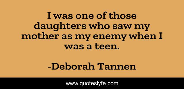 This page presents the quote "I was one of those daughters who saw my mother as my enemy when I was a teen.". Author of this quote is Deborah Tannen. This quote is about enemy, daughters, mother,.