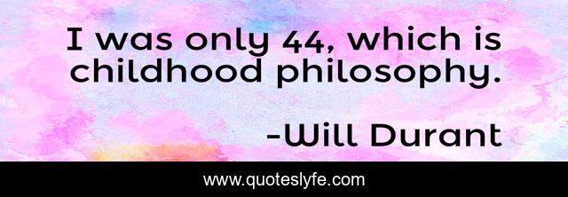 This page presents the quote "I was only 44, which is childhood philosophy.". Author of this quote is Will Durant. This quote is about maturation, openness, lifelong-learning, humility,.