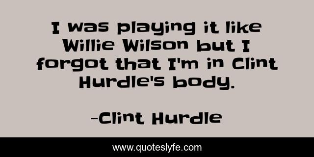 This page presents the quote "I was playing it like Willie Wilson but I forgot that I'm in Clint Hurdle's body.". Author of this quote is Clint Hurdle. .
