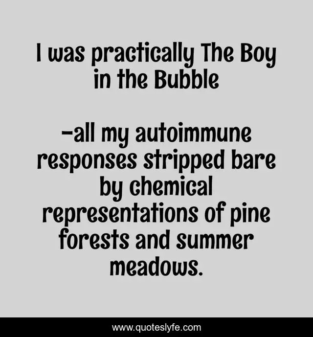"all my autoimmune responses stripped bare by chemical representations of pine forests and summer meadows. Quotes." Quoteslyfe.com, 2025. Fri. 05 Dec. 2025. <https://www.quoteslyfe.com/quote/I-was-practically-The-Boy-in-the-177005>.
