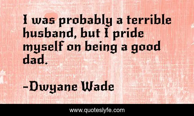 This page presents the quote "I was probably a terrible husband, but I pride myself on being a good dad.". Author of this quote is Dwyane Wade. This quote is about myself, pride, good,.