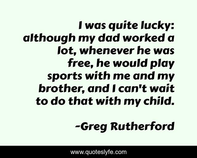 This page presents the quote "I was quite lucky: although my dad worked a lot, whenever he was free, he would play sports with me and my brother, and I can't wait to do that with my child.". Author of this quote is Greg Rutherford. This quote is about me, brother, child,.