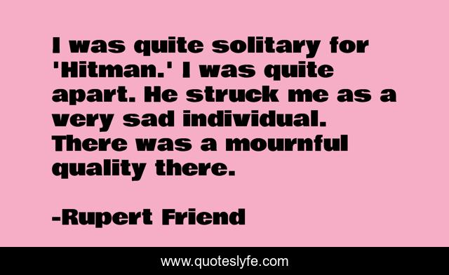 This page presents the quote "I was quite solitary for 'Hitman.' I was quite apart. He struck me as a very sad individual. There was a mournful quality there.". Author of this quote is Rupert Friend. This quote is about me, individual, quality,.