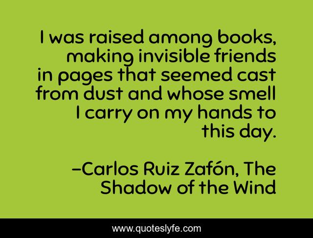 "Carlos Ruiz Zafón, The Shadow of the Wind Quotes." Quoteslyfe.com, 2025. Sat. 06 Dec. 2025. <https://www.quoteslyfe.com/quote/I-was-raised-among-books-making-invisible-42795>.