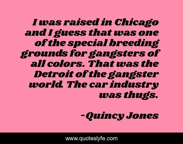 This page presents the quote "I was raised in Chicago and I guess that was one of the special breeding grounds for gangsters of all colors. That was the Detroit of the gangster world. The car industry was thugs.". Author of this quote is Quincy Jones. This quote is about world, colors, gangster,.