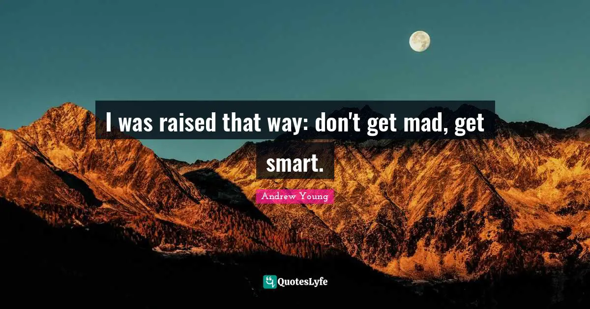 This page presents the quote "I was raised that way: don't get mad, get smart.". Author of this quote is Andrew Young. This quote is about smart, raised, mad, way,.