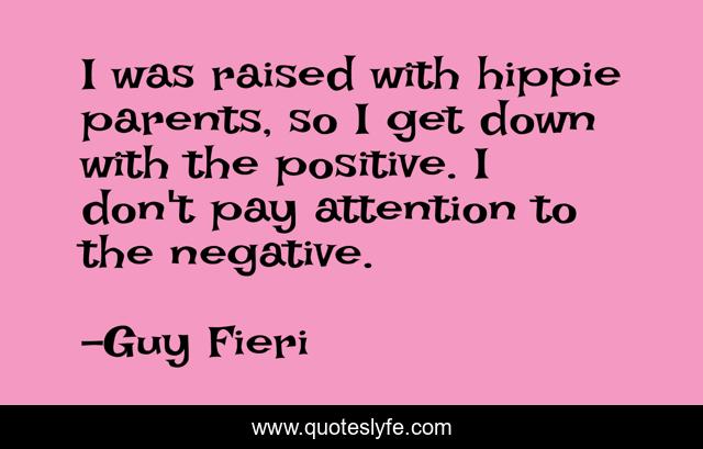 This page presents the quote "I was raised with hippie parents, so I get down with the positive. I don't pay attention to the negative.". Author of this quote is Guy Fieri. This quote is about attention, parents, negative,.