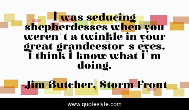 "Jim Butcher, Storm Front Quotes." Quoteslyfe.com, 2025. Mon. 08 Dec. 2025. <https://www.quoteslyfe.com/quote/I-was-seducing-shepherdesses-when-you-weren-58602>.
