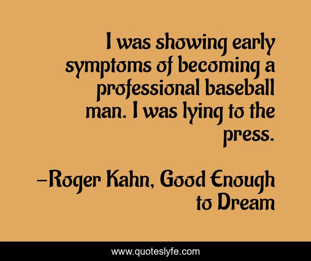 This page presents the quote "I was showing early symptoms of becoming a professional baseball man. I was lying to the press.". Author of this quote is Roger Kahn, Good Enough to Dream. This quote is about media, entertainment, sports,.
