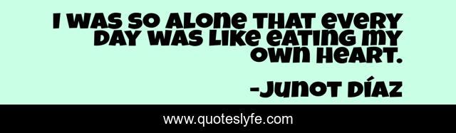 This page presents the quote "I was so alone that every day was like eating my own heart.". Author of this quote is Junot Díaz. .