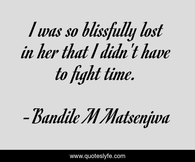 This page presents the quote "I was so blissfully lost in her that I didn't have to fight time.". Author of this quote is Bandile M Matsenjwa. This quote is about enthusiasm, the-recipe, inspirational,.
