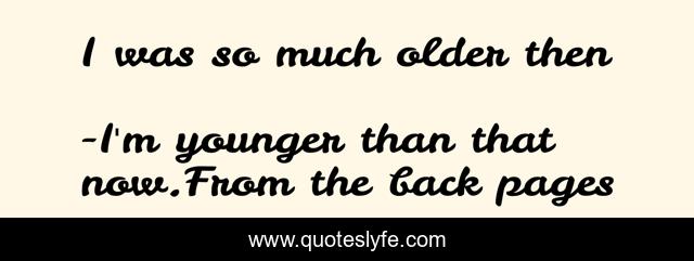 "I'm younger than that now.From the back pages Quotes." Quoteslyfe.com, 2025. Sat. 06 Dec. 2025. <https://www.quoteslyfe.com/quote/I-was-so-much-older-then-209181>.