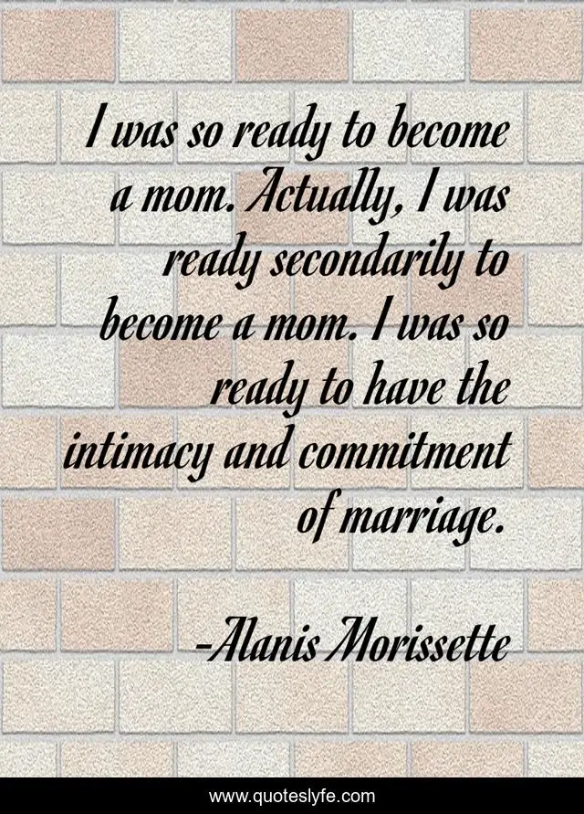 This page presents the quote "I was so ready to become a mom. Actually, I was ready secondarily to become a mom. I was so ready to have the intimacy and commitment of marriage.". Author of this quote is Alanis Morissette. This quote is about intimacy, commitment, mom,.