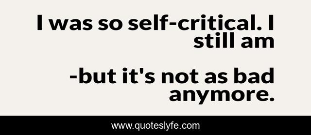 "but it's not as bad anymore. Quotes." Quoteslyfe.com, 2025. Mon. 08 Dec. 2025. <https://www.quoteslyfe.com/quote/I-was-so-self-critical-I-still-113638>.