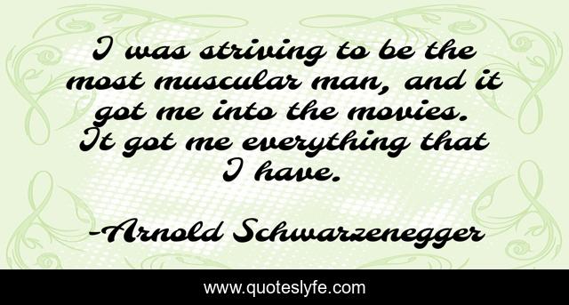 This page presents the quote "I was striving to be the most muscular man, and it got me into the movies. It got me everything that I have.". Author of this quote is Arnold Schwarzenegger. This quote is about me, striving, man,.