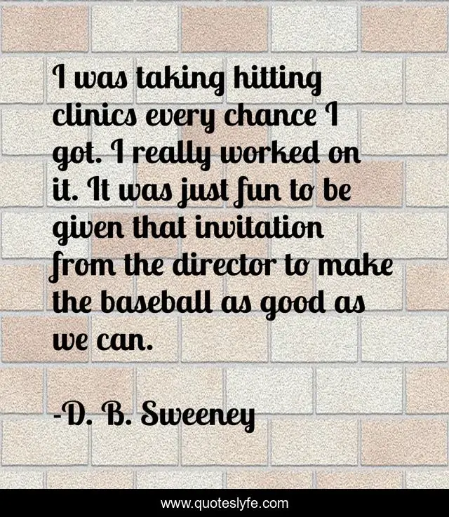 This page presents the quote "I was taking hitting clinics every chance I got. I really worked on it. It was just fun to be given that invitation from the director to make the baseball as good as we can.". Author of this quote is D. B. Sweeney. This quote is about fun, good, baseball,.