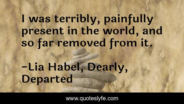 This page presents the quote "I was terribly, painfully present in the world, and so far removed from it.". Author of this quote is Lia Habel, Dearly, Departed. This quote is about zombie, sad,.