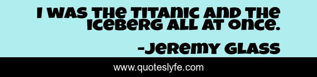 "Jeremy Glass Quotes." Quoteslyfe.com, 2025. Sun. 07 Dec. 2025. <https://www.quoteslyfe.com/quote/I-was-the-Titanic-and-the-iceberg-125701>.