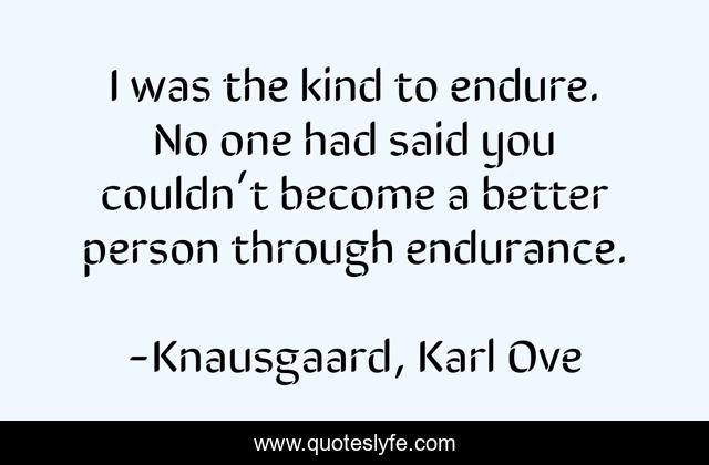This page presents the quote "I was the kind to endure. No one had said you couldn’t become a better person through endurance.". Author of this quote is Knausgaard, Karl Ove. .