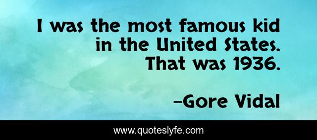 This page presents the quote "I was the most famous kid in the United States. That was 1936.". Author of this quote is Gore Vidal. This quote is about united states, united, kid,.