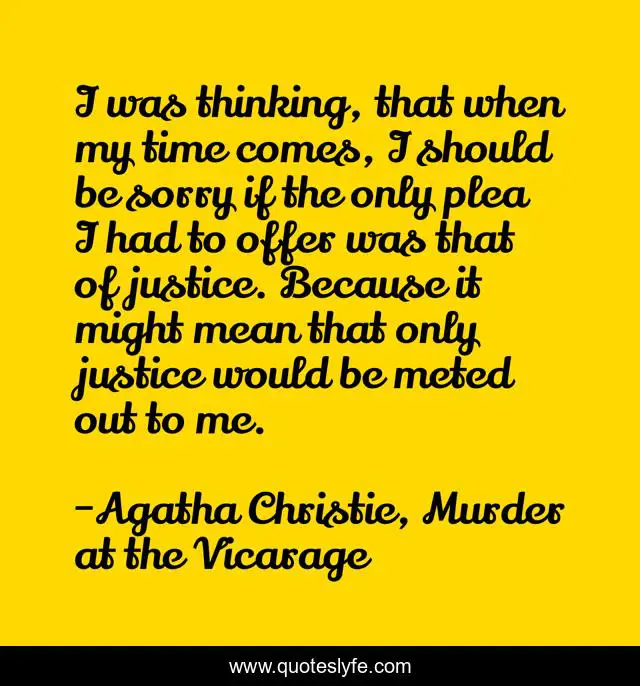 This page presents the quote "I was thinking, that when my time comes, I should be sorry if the only plea I had to offer was that of justice. Because it might mean that only justice would be meted out to me.". Author of this quote is Agatha Christie, Murder at the Vicarage. This quote is about justice, mercy, judgement-day,.
