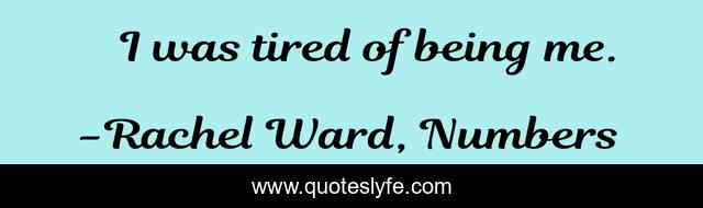 "Rachel Ward, Numbers Quotes." Quoteslyfe.com, 2025. Fri. 05 Dec. 2025. <https://www.quoteslyfe.com/quote/I-was-tired-of-being-me-21130>.