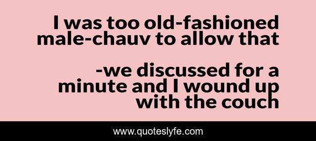 "we discussed for a minute and I wound up with the couch Quotes." Quoteslyfe.com, 2025. Sat. 06 Dec. 2025. <https://www.quoteslyfe.com/quote/I-was-too-old-fashioned-male-chauv-102161>.