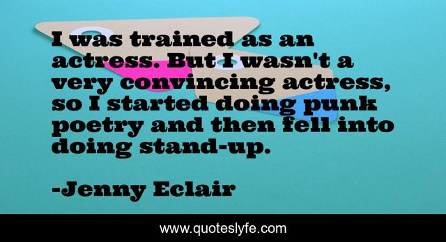 This page presents the quote "I was trained as an actress. But I wasn't a very convincing actress, so I started doing punk poetry and then fell into doing stand-up.". Author of this quote is Jenny Eclair. This quote is about punk, actress,.