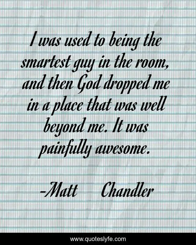 This page presents the quote "I was used to being the smartest guy in the room, and then God dropped me in a place that was well beyond me. It was painfully awesome.". Author of this quote is Matt Chandler. This quote is about challenges, discipleship, pastoring,.