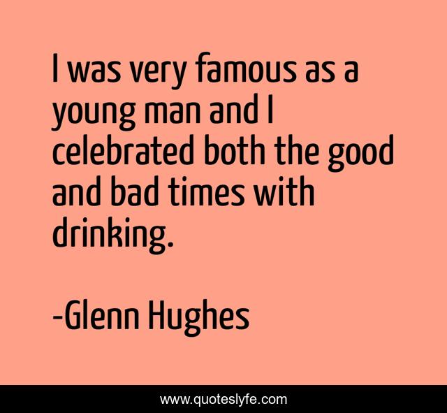 This page presents the quote "I was very famous as a young man and I celebrated both the good and bad times with drinking.". Author of this quote is Glenn Hughes. This quote is about good, good and bad, man,.