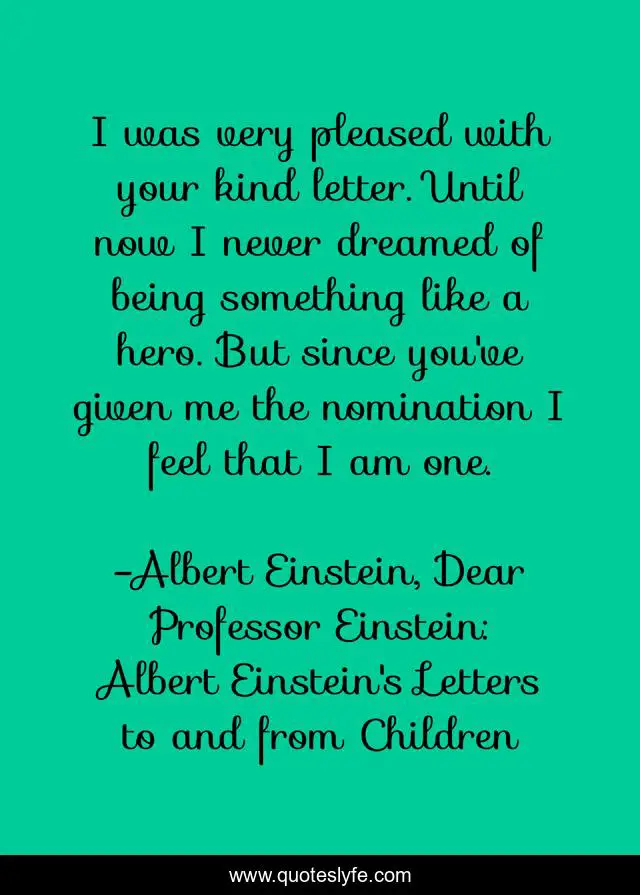 "Albert Einstein, Dear Professor Einstein: Albert Einstein's Letters to and from Children Quotes." Quoteslyfe.com, 2025. Sat. 06 Dec. 2025. <https://www.quoteslyfe.com/quote/I-was-very-pleased-with-your-kind-99285>.