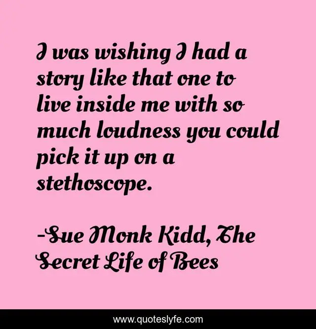 "Sue Monk Kidd, The Secret Life of Bees Quotes." Quoteslyfe.com, 2025. Tue. 09 Dec. 2025. <https://www.quoteslyfe.com/quote/I-was-wishing-I-had-a-story-180658>.