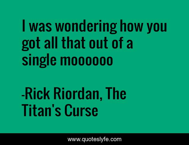 This page presents the quote "I was wondering how you got all that out of a single moooooo". Author of this quote is Rick Riordan, The Titan's Curse. This quote is about moooooo, percy-jackson,.